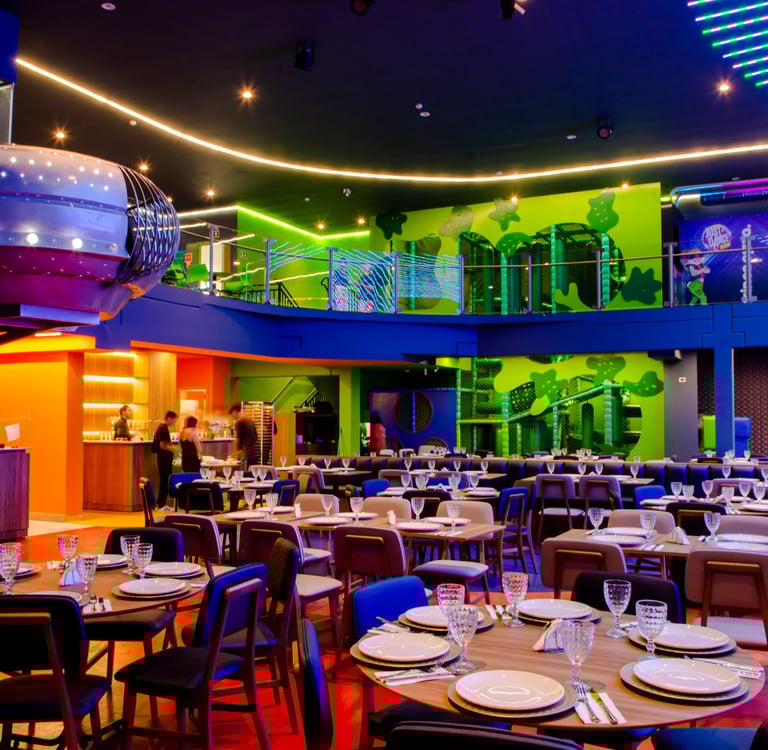 Com uma super estrutura inédita no Brasil construída em 1.200 m2, nosso espaço comporta 270 pessoas e reúne rodízio de pizza e entretenimento indoor com mais de 25 atrações.
